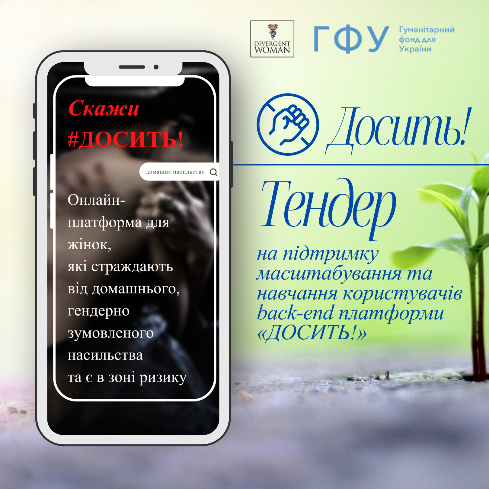 Оголошення про проведення тендеру із закупівлі робіт з підтримки платформи протидії та запобігання ДН та ГЗН ДОСИТЬ!