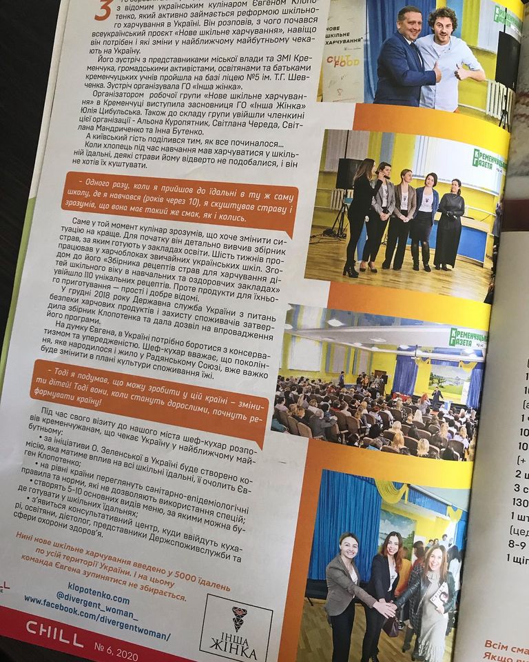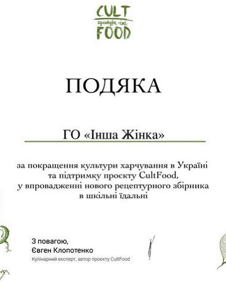 Так,саме в цьому році ГО стала офіційним представником в Полтавській області всеукраїнського проекту Нове шкільне харчування/Cult Food